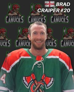 20 Brad Craiper 5. Ben Smith7. Dan Kinsey8. Jordan Jefferies9. Giacomo Raffaelli12. Stefan Joseph13. Sam Davies14. Kobe Evans16. Henry Stanley19. Zak Shanahan20. Brad Craiper23. Alex Williams27. Joseph Tearall29. John Dibble30. Gregg Orr33. Oliver Thompson39. Mackenzie Macnamara44. Joe Morris47. Henry Callaghan56. Sam Bryant64. Lewis Hallewell71. Viktor Karlaker Langseth75. Harvey Rose78. Max McEwan83. Steve Osman91. Jaydon Ford #20NameBrad CraiperNationalityEnglandPositionForwardsCurrent TeamCardiff Canucks NIHL 2SeasonTeamGAHSOGPIMSAGASVGPPS%SV%2025-2026Cardiff Canucks000000003000Total-000000003000