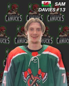 13 Sam Davies 5. Ben Smith7. Dan Kinsey8. Jordan Jefferies9. Giacomo Raffaelli12. Stefan Joseph13. Sam Davies14. Kobe Evans16. Henry Stanley19. Zak Shanahan20. Brad Craiper23. Alex Williams27. Joseph Tearall29. John Dibble30. Gregg Orr33. Oliver Thompson39. Mackenzie Macnamara44. Joe Morris47. Henry Callaghan56. Sam Bryant64. Lewis Hallewell71. Viktor Karlaker Langseth75. Harvey Rose78. Max McEwan83. Steve Osman91. Jaydon Ford #13NameSam DaviesNationalityWalesPositionForwardsCurrent TeamCardiff Canucks NIHL 2SeasonTeamGAHSOGPIMSAGASVGPPS%SV%2025-2026Cardiff Canucks540000003000Total-540000003000